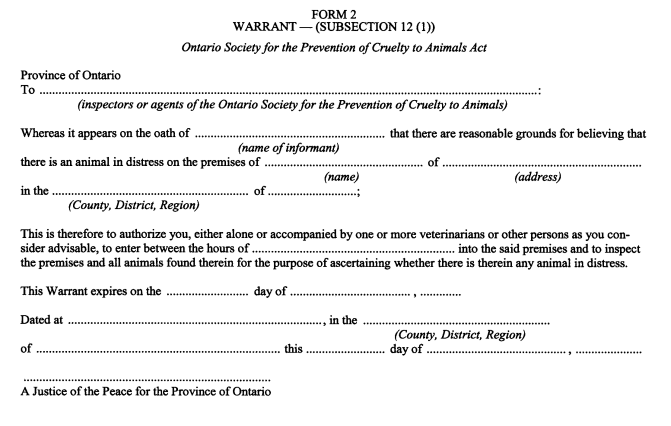 O. Reg. 448/06: Warrants, Filed September 18, 2006 under Ontario Society for the Prevention of Cruelty to Animals Act, R.S.O. 1990, c. O.36