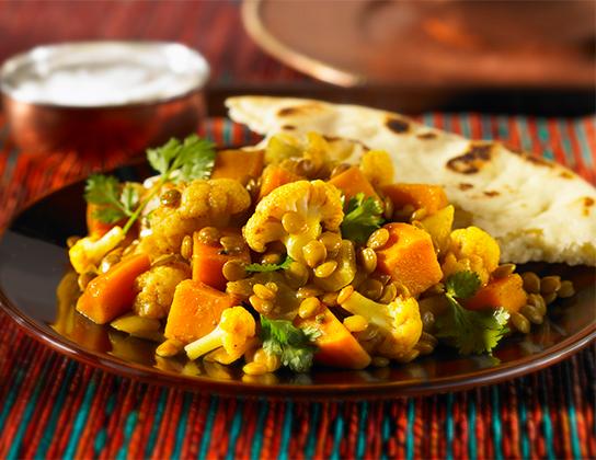 Ajouter les lentilles et le bouillon et mélanger; couvrir et amener à ébullition sur feu fort. Baisser le feu et laisser mijoter, à couvert, pendant 15 minutes. Ajouter le chou-fleur et amener à nouveau à ébullition; baisser le feu et laisser mijoter de 8 à 10 minutes ou jusqu’à ce que les lentilles et les légumes soient tendres.