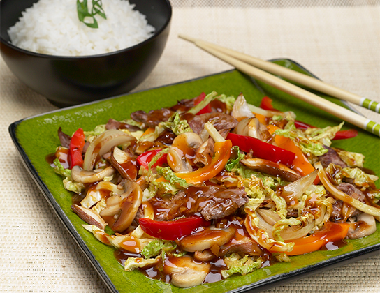 In large deep skillet or wok, heat 1 tbsp (15 mL) of the oil over medium-high heat; stir-fry beef for 2 minutes or until browned but still pink inside. Remove and set aside.