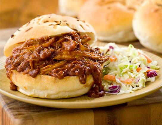 Remove roast to large plate. Using 2 forks in opposite directions, shred meat along its length. Stir meat back into sauce and serve on buns.