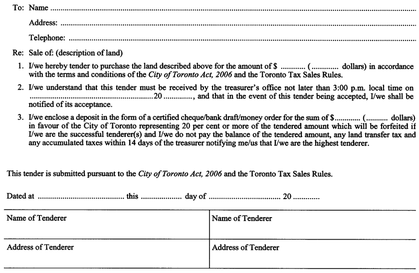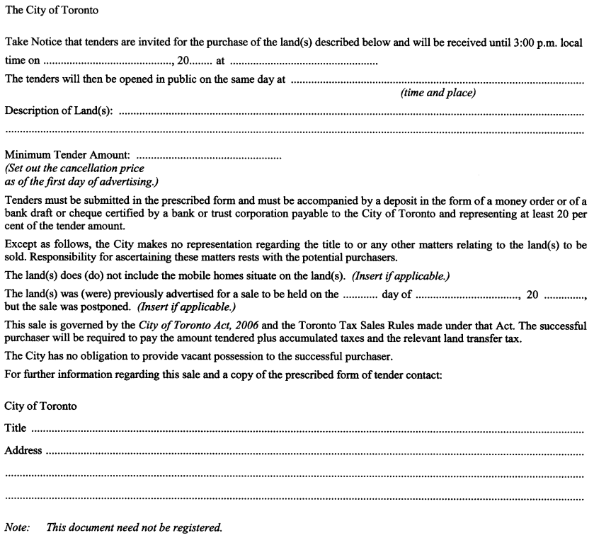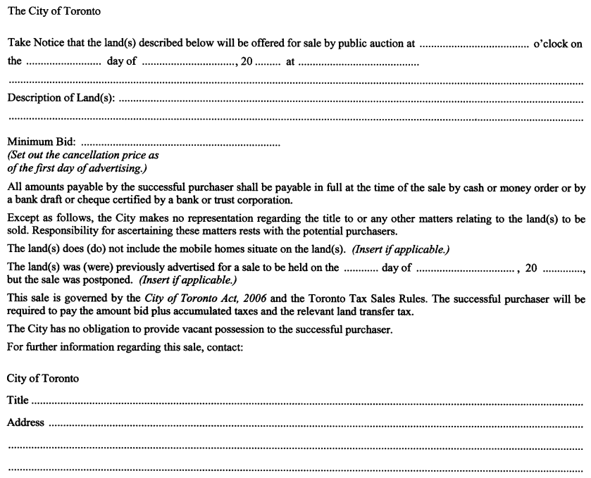 O. Reg. 579/06: TORONTO TAX SALES RULES, City of Toronto Act, 2006, S.O. 2006, c. 11, Sched. A