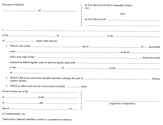 3. The service of a summons on a witness, the payment or tender of fees and allowances to the witness and the service of a notice on a witness may be proved by an affidavit in Form 2. R.R.O. 1990, Reg. 90, s. 5.