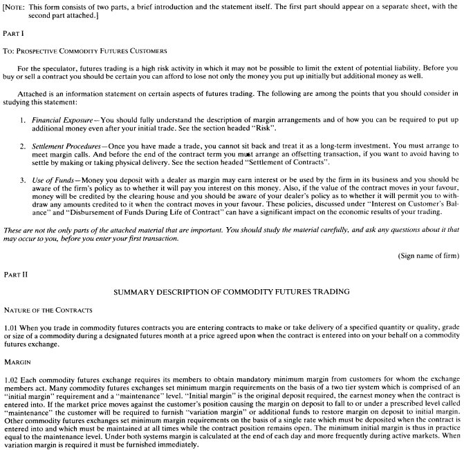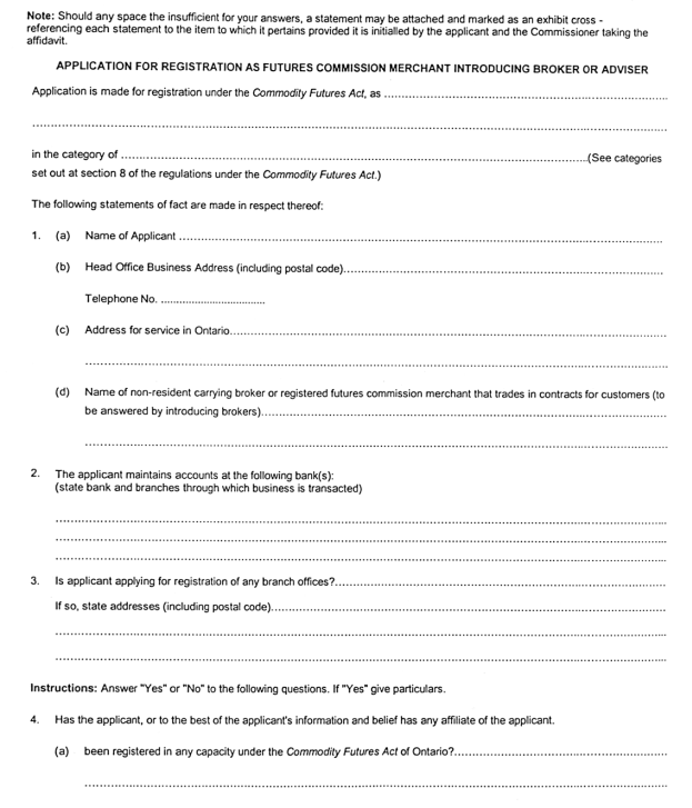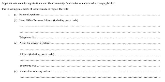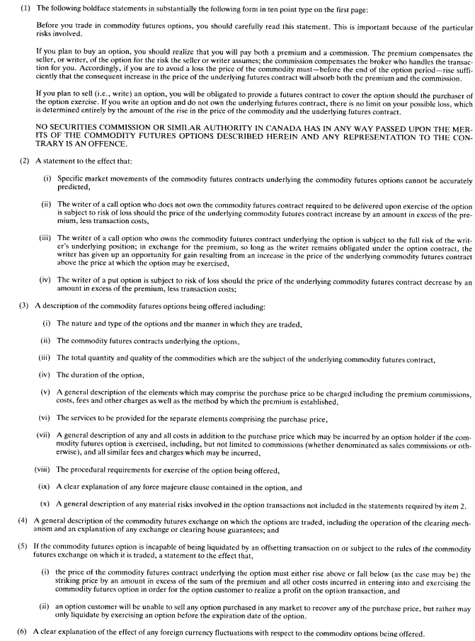 (b) Form 15 where the prospective customer contemplates trades in commodity futures options. R.R.O. 1990, Reg. 90, s. 45.