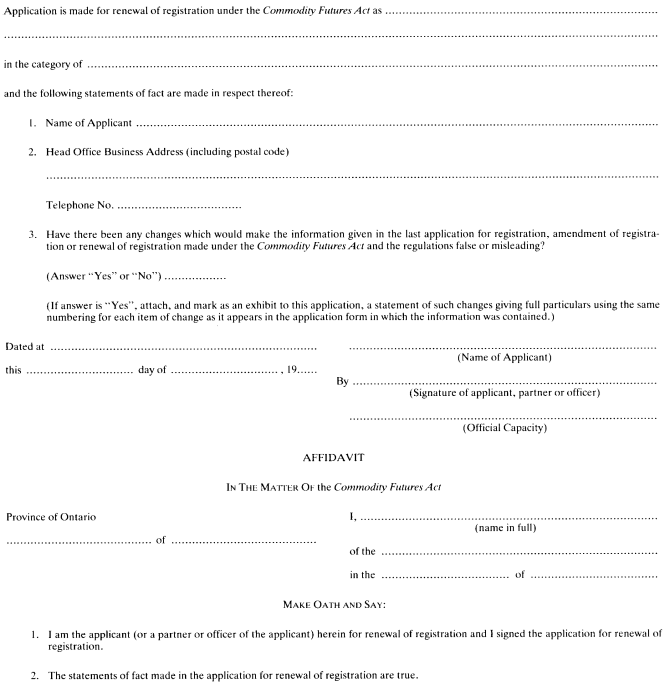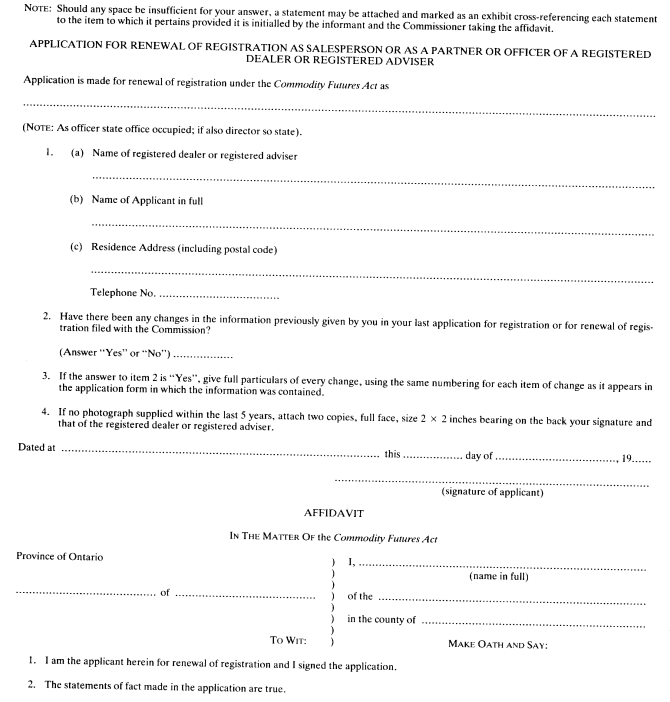 (2) An applicant for renewal of registration as a salesperson or as a partner or officer of a registered dealer or adviser shall complete and execute Form 10 or, where the applicant is registered under the Securities Act, shall file a letter with the Director requesting renewal of registration under this Act. R.R.O. 1990, Reg. 90, s. 41 (2).