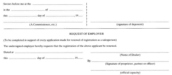 Application for renewal of registration as salesperson or as a partner or officer of a registered dealer or registered adviser |