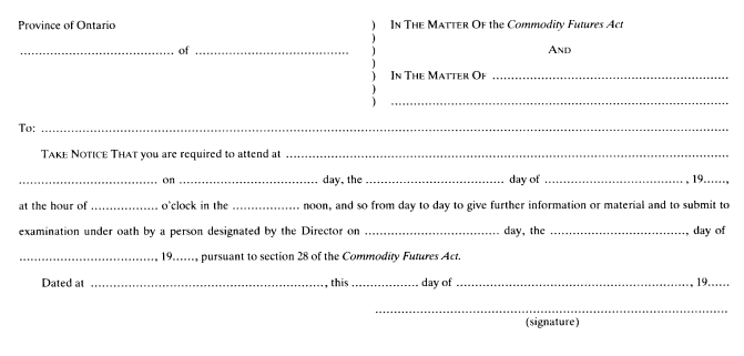 42. Every notice to submit to an examination under section 28 of the Act shall be in Form 11. R.R.O. 1990, Reg. 90, s. 42.