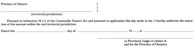 46. The endorsement of a warrant by a provincial judge or justice of Ontario provided for by section 58 of the Act shall be in accordance with Form 16. R.R.O. 1990, Reg. 90, s. 46.
