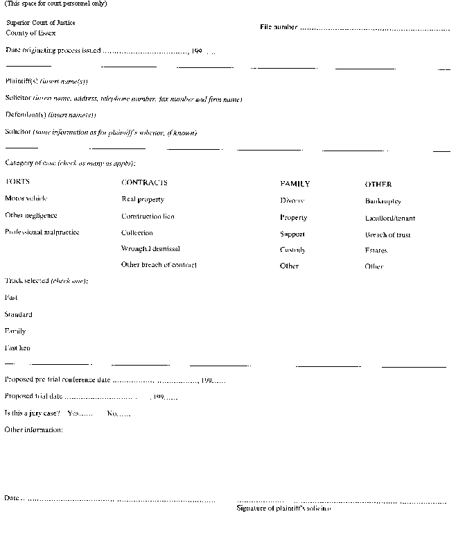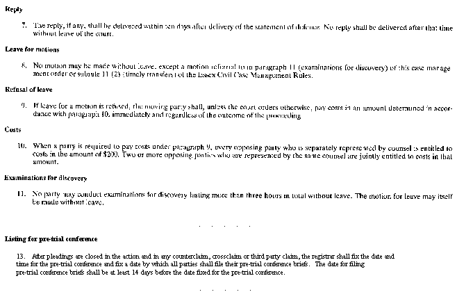 R.R.O. 1990, Reg. 189: ESSEX CIVIL CASE MANAGEMENT RULES, Courts of Justice Act, R.S.O. 1990, c. C.43