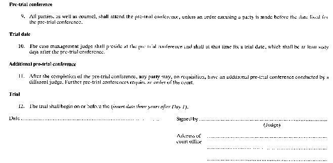 6. The registrar shall also fix a date and time for a case management conference and may order that the conference be held by means of a conference telephone call.