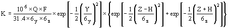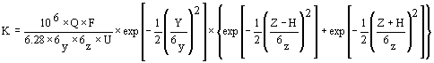 K is the half hour average concentration at the point of impingement in micrograms per cubic metre,
