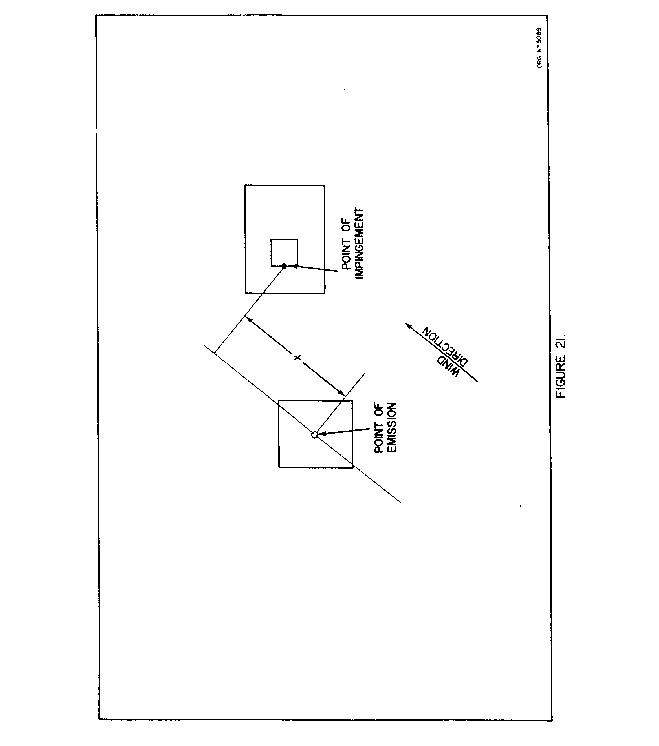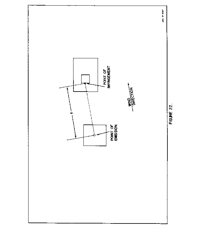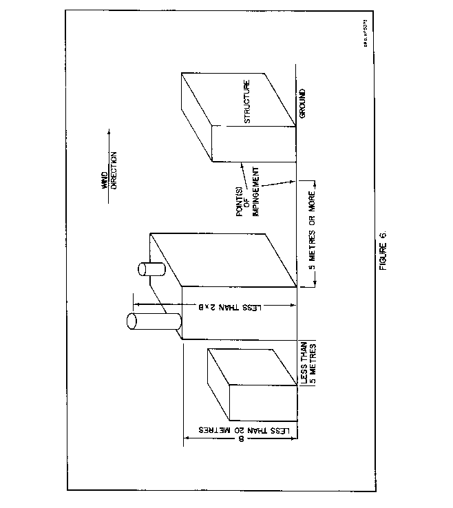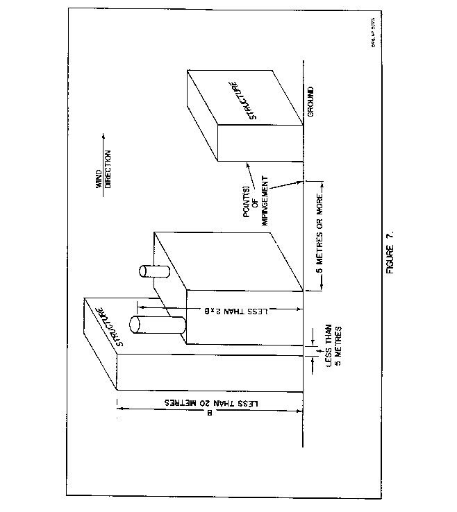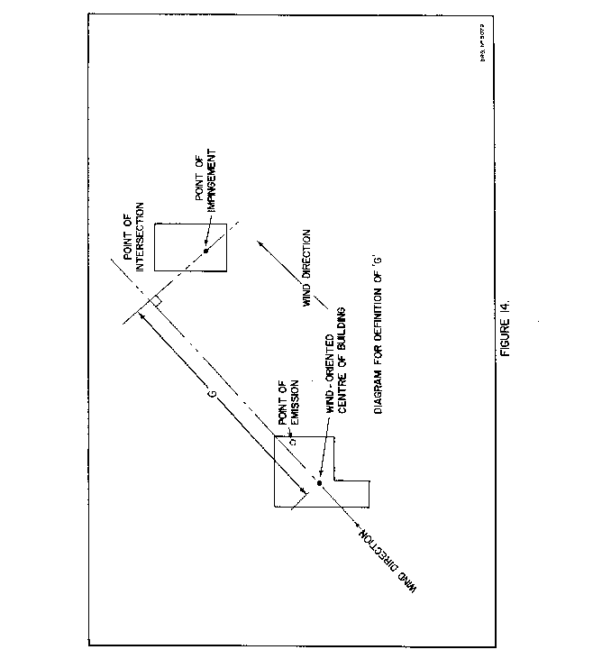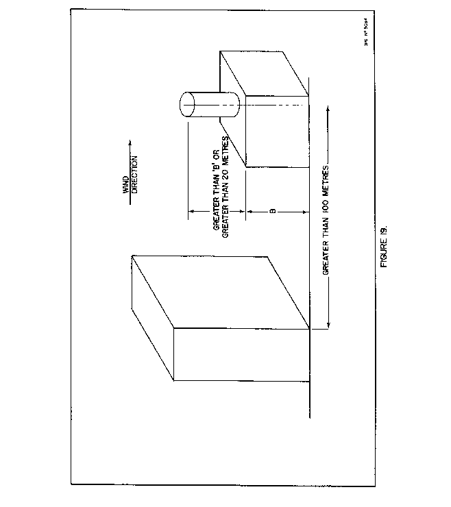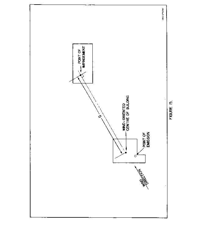 2. the building or structure is a horizontal distance of 100 metres or less from the point of emission, (see figures 9 and 10)