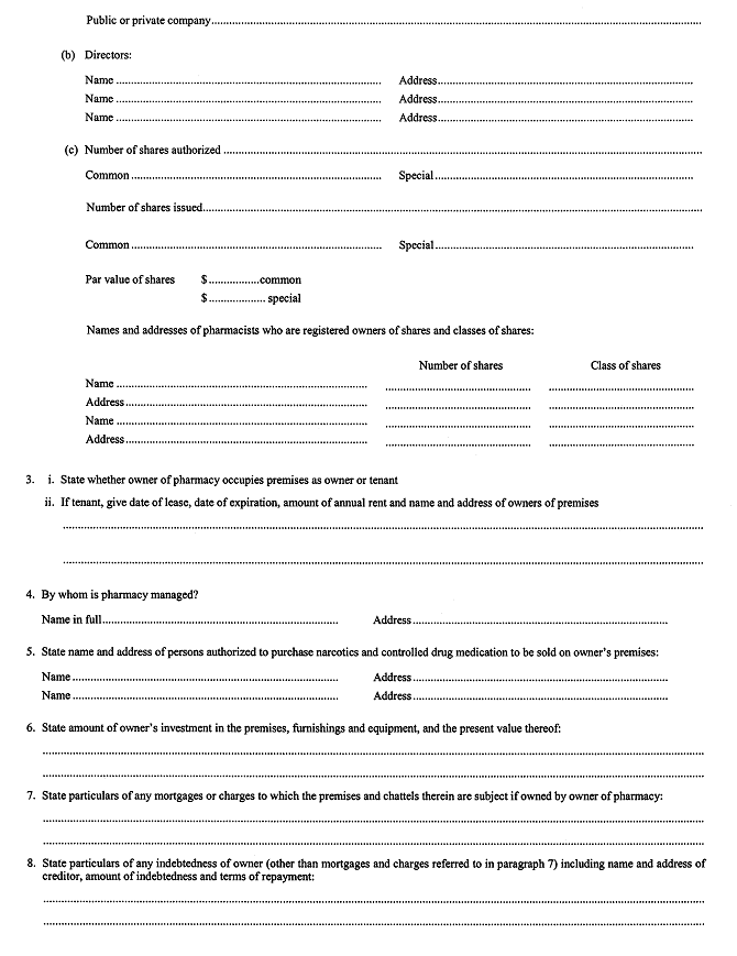 (a) the full name of the owner of the pharmacy and, where the owner is a corporation, the full name and residential addresses of the directors of the corporation;