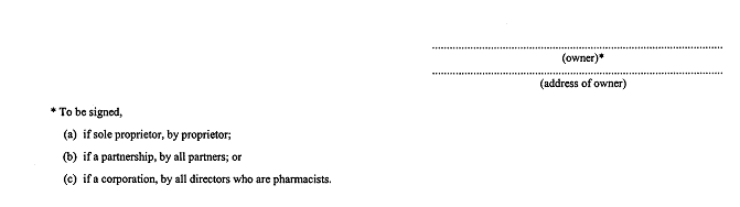 (h) the date on which all signs and symbols relating to the practice of pharmacy either within or outside the premises were removed. R.R.O. 1990, Reg. 551, s. 77.