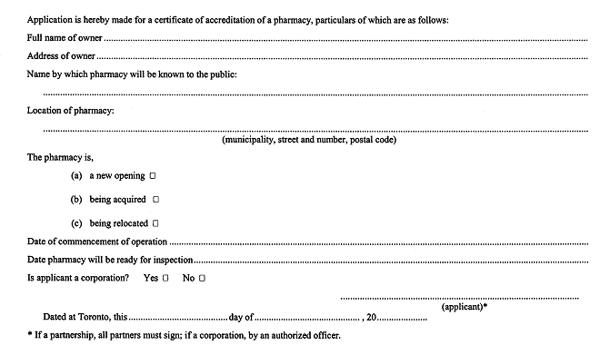 52. An application for a certificate of accreditation of a pharmacy shall be in Form 3. R.R.O. 1990, Reg. 551, s. 52.