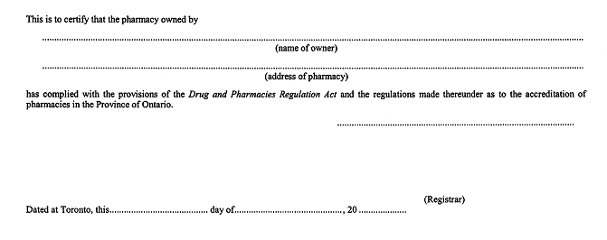 CERTIFICATE OF ACCREDITATION OF A PHARMACY — ONTARIO COLLEGE OF PHARMACISTS