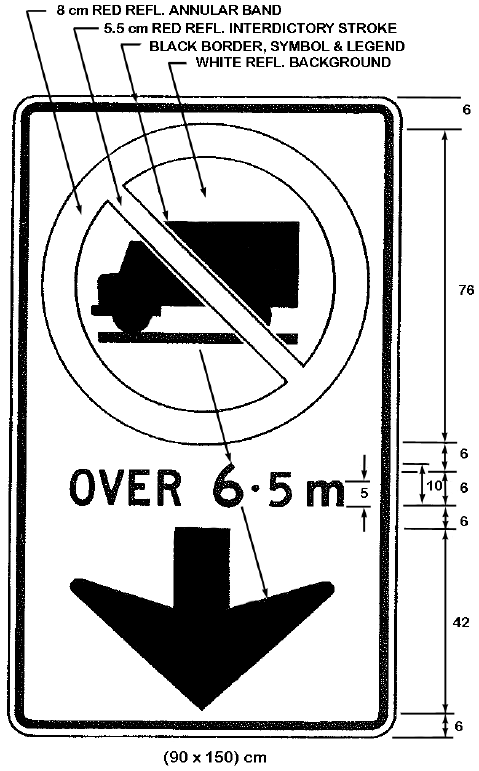 3. (1) Where the conditions make it impracticable to place a sign in accordance with the requirements of section 2, a sign indicating that commercial motor vehicles are prohibited in the left lane of a highway shall be in the form and dimensions illustrated in the following Figure: