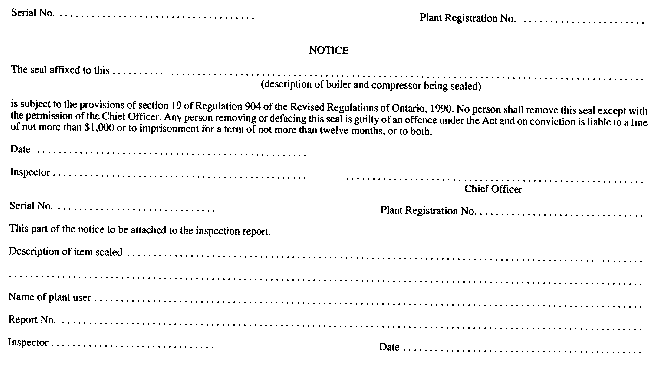 (5) A notice of isolation of a boiler or compressor shall be in Form 5.