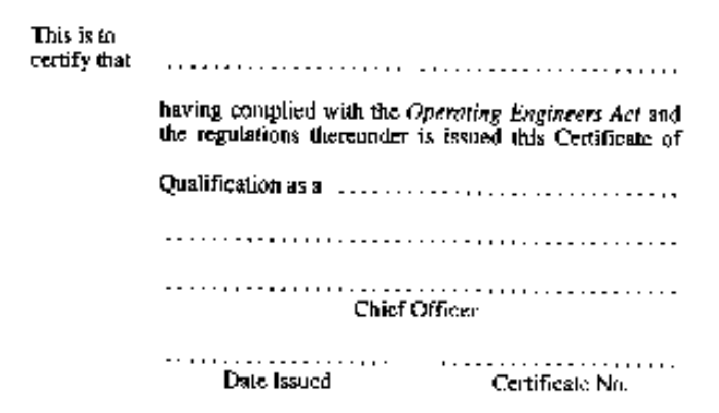 On examination or re-examination for a certificate of qualification as an operating engineer or operator |