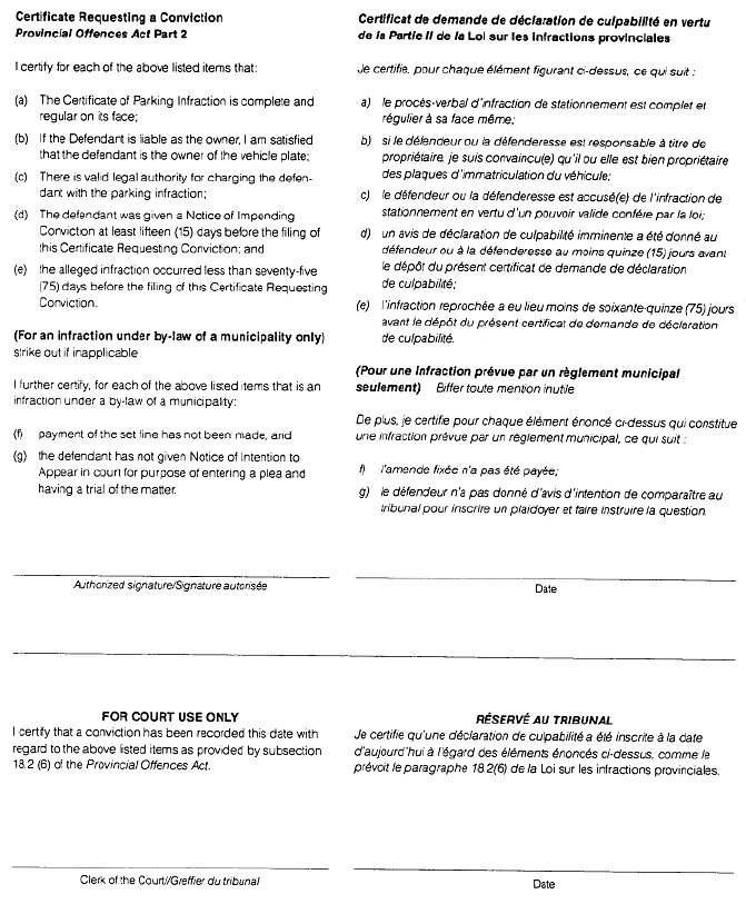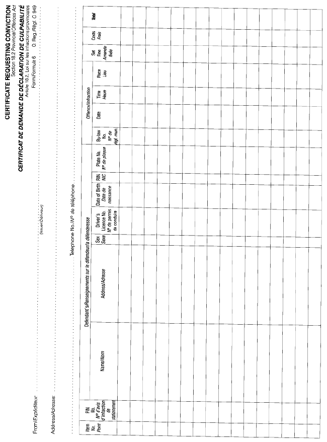 Certificate requesting conviction/certificat de demande de déclaration de culpabilité | |