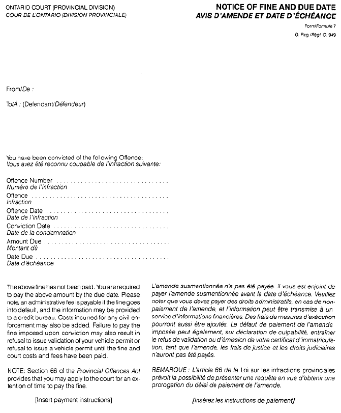 7. A notice of fine and due date shall be in Form 7. O. Reg. 494/94, s. 1.
