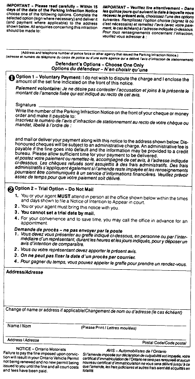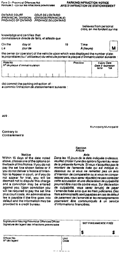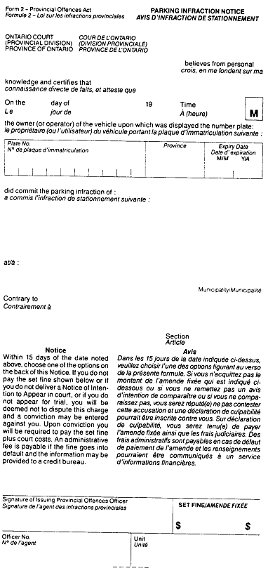 PARKING INFRACTION NOTICE/AVIS D’INFRACTION DE STATIONNEMENT