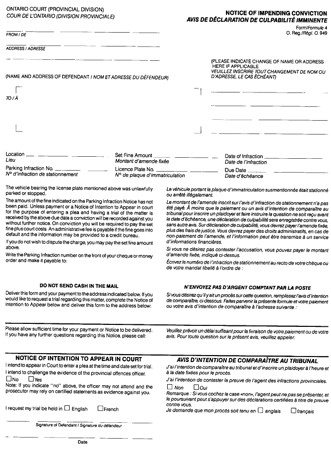 Notice of fine and due date/avis d’amende et date d’échéance |