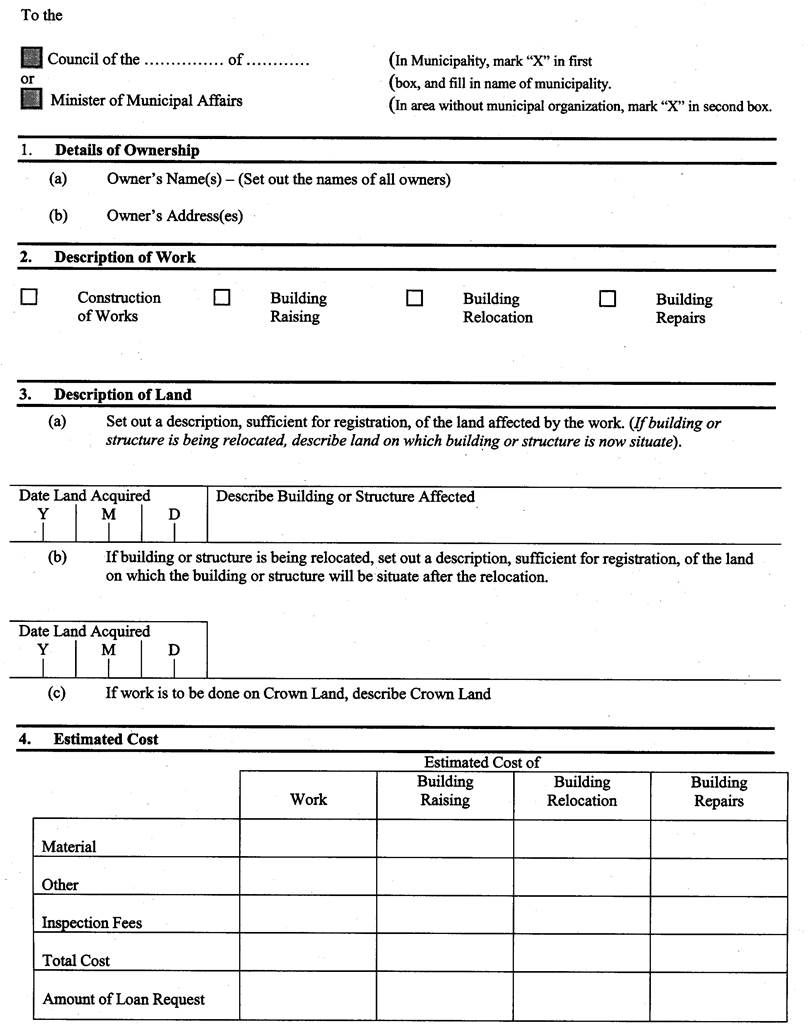 5. The application for a loan and the accompanying declaration referred to in the Act shall be in Form 6 and Form 7 respectively. R.R.O. 1990, Reg. 1017, s. 5.