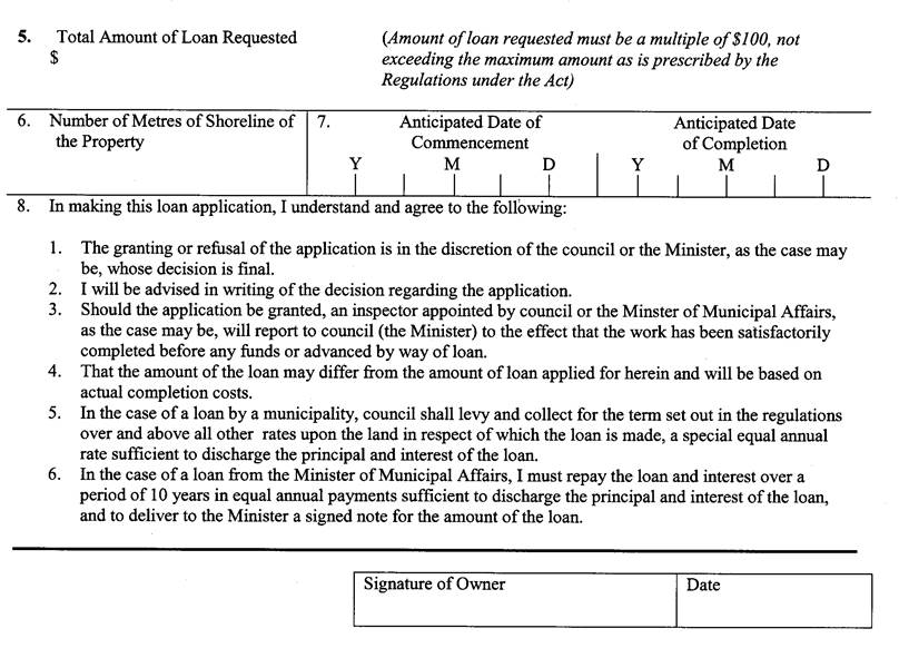 Dated at the …………….……. of ……….……….. in the Province of Ontario, this 1st day of ……………………….., 19 ………., under the authority of Borrowing By-Law Number …………… of the Corporation entitled “A By-law to raise money to aid in the construction of works and building repairs under the Shoreline Property Assistance Act”. |