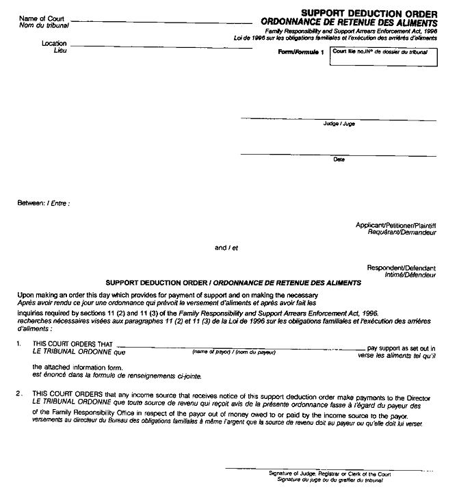 7. (1) A support deduction order shall be in Form 1. O. Reg. 167/97, s. 7 (1).