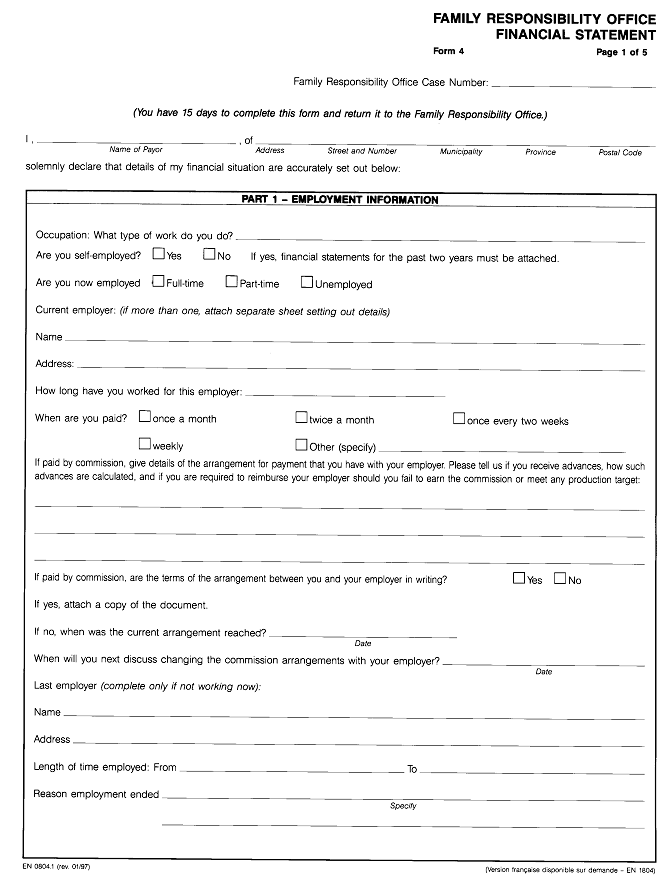 14. A financial statement under subsection 40 (1) or 41 (1) of the Act shall be in Form 4. O. Reg. 167/97, s. 14.