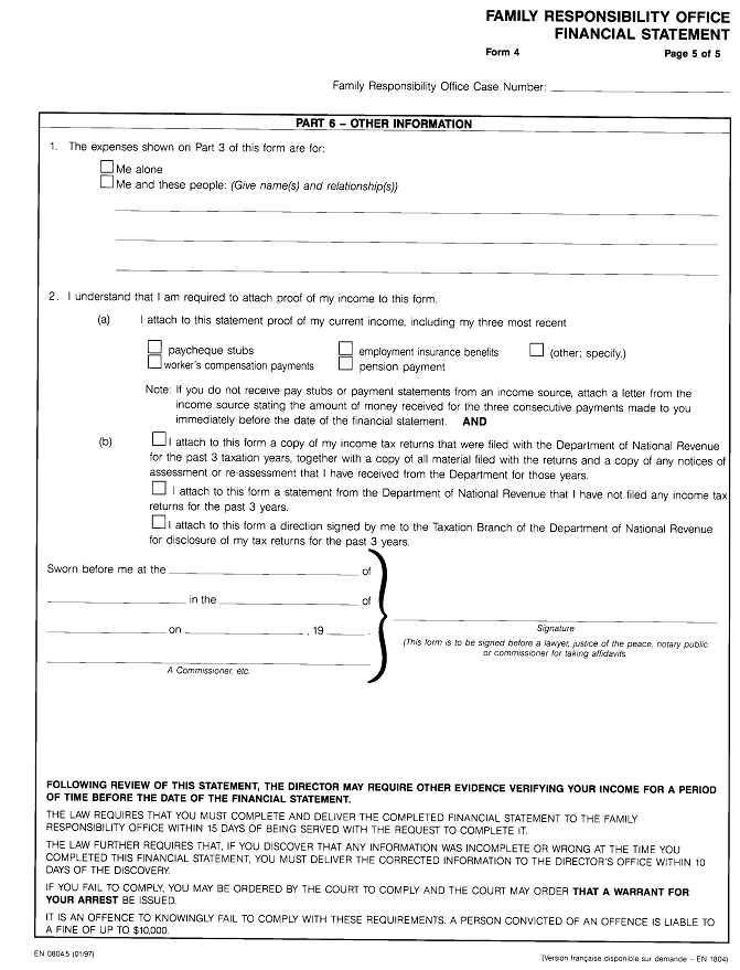 3. The Family Responsibility Office case number. O. Reg. 167/97, s. 20.
