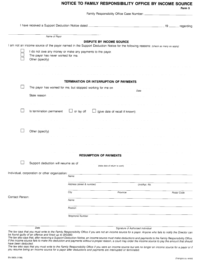 NOTICE TO FAMILY RESPONSIBILITY OFFICE BY INCOME SOURCE