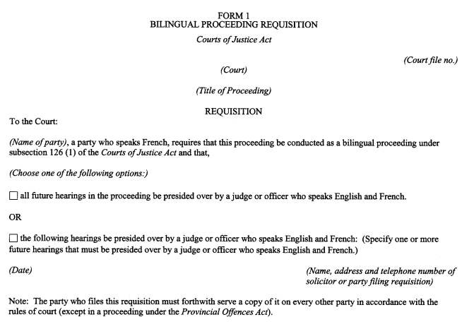 (a) to have exercised the right under subsection 126 (1) of the Courts of Justice Act to require that the proceeding be conducted as a bilingual proceeding; and