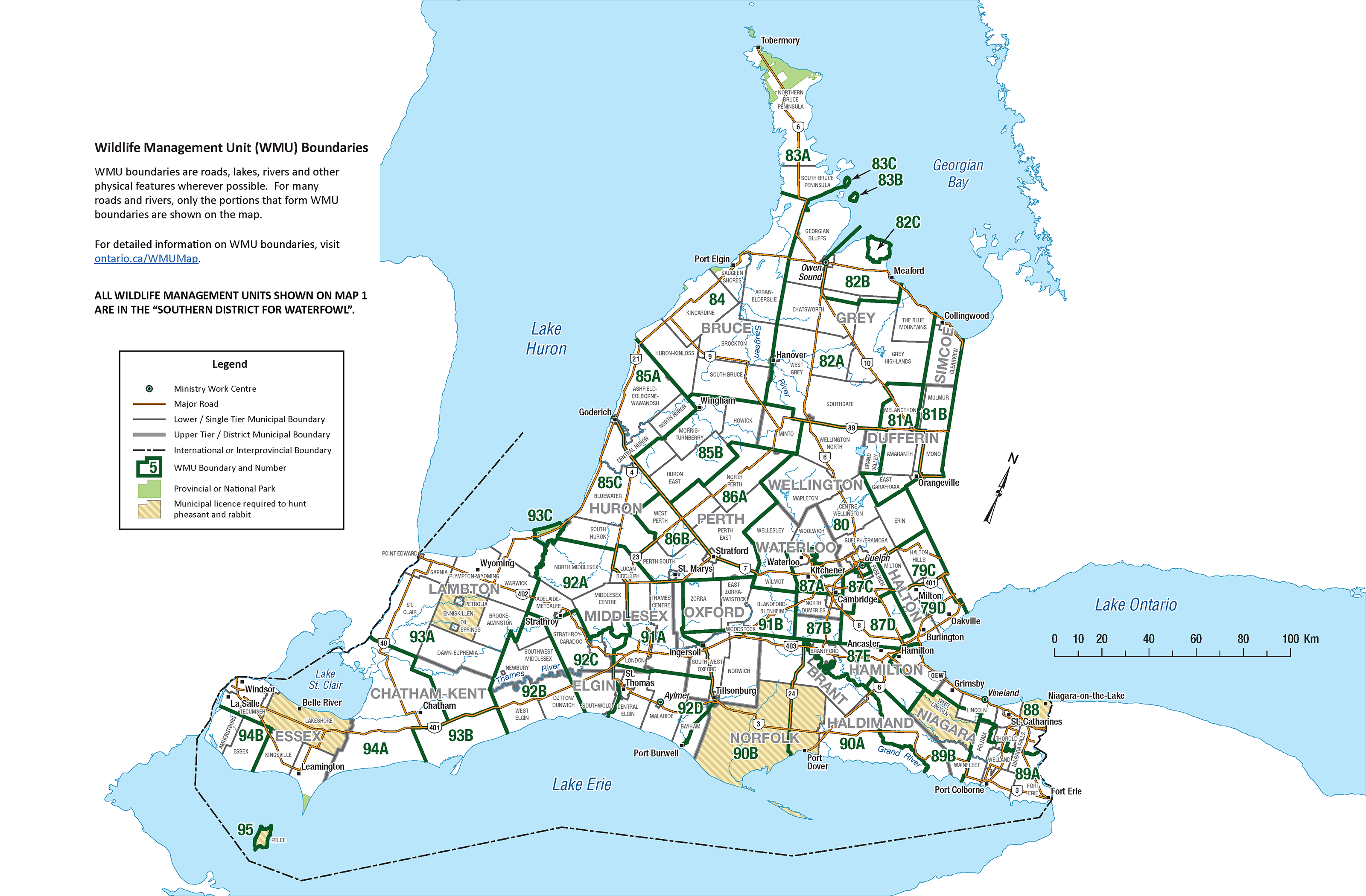 Wildlife Management Unit Map 1 – Southwestern Ontario