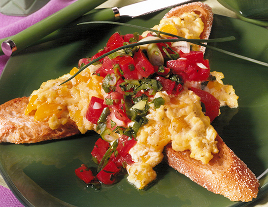Toast: Arrange 3 slices toast on each plate in shape of trillium; spoon egg mixture on top. Spoon salsa in middle of trillium design.