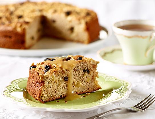 Sauce: In small bowl, whisk together cornstarch and water together until smooth. In small saucepan over medium-high heat, melt butter. Add cornstarch mixture to saucepan along with brown sugar and apple juice; whisking well. Bring to boil. Reduce heat and cook until slightly thickened, about 3 minutes, stirring constantly. Drizzle sauce over individual cake slices. Sauce can be served warm or cold.