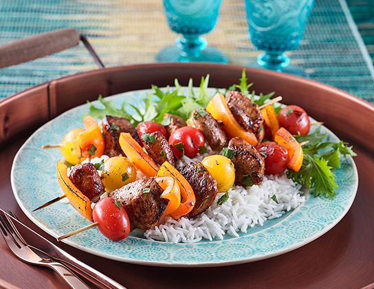 Tip: To oven bake, place kebabs on greased rack over foil-lined baking sheet. Bake in 450°F (230°C) oven for 10 minutes, turning over partway through, until chicken is cooked.
