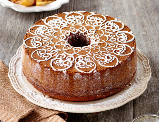 Bake in 325°F (160°C) oven for 40 minutes. Reduce heat to 300°F (150°C); bake until tester inserted in middle of cake comes out clean, 30 to 35 minutes. Let cool for 20 minutes in pan on rack. Run metal spatula around edges of cake and turn out onto rack to cool completely. Wrap in plastic wrap and ripen in airtight container for a day before cutting. Sprinkle with icing sugar just before serving. (The cake keeps for several days at room temperature and freezes well.)