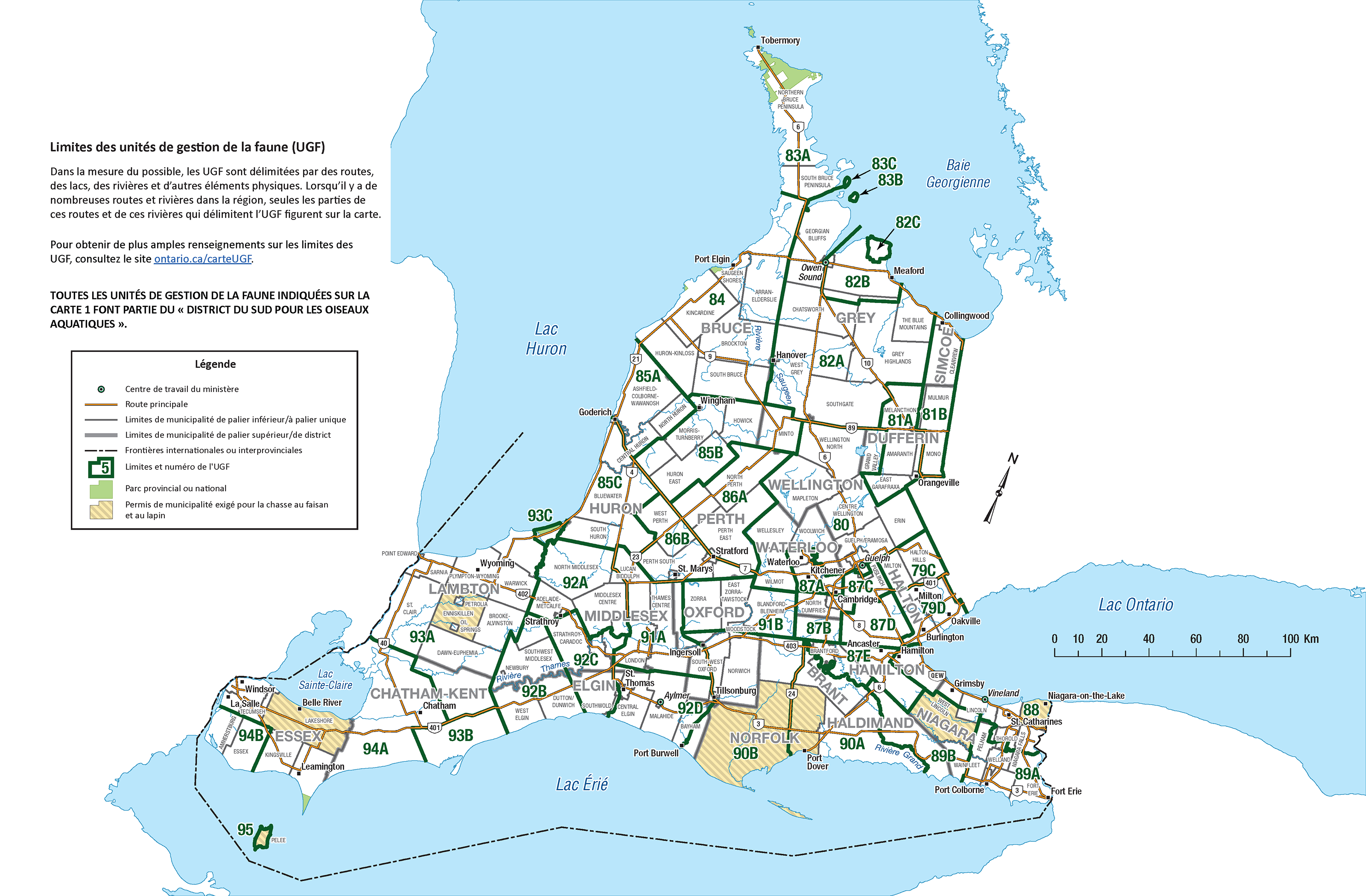 Pour obtenir de plus amples reseignements sur les limites des UGF, consultez le site trouver une carte des unités de gestion de la faune (UGF).