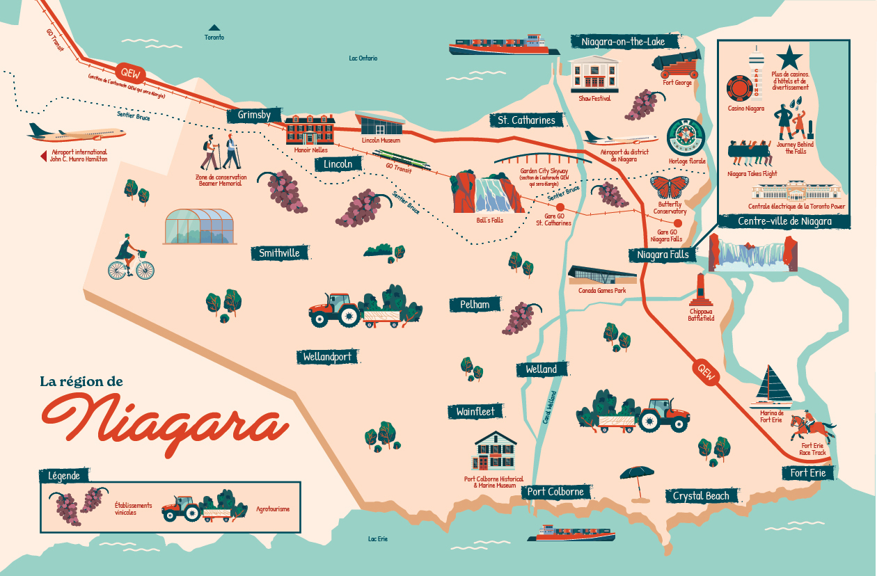 La stratégie Destination Niagara décrit les moyens de protéger et de développer l’économie de l’Ontario en attirant davantage de visiteurs dans la région de Niagara et en les encourageant à prolonger leur séjour. L’Ontario ciblera ses investissements et son développement sur cinq piliers clés : les attractions touristiques, les jeux de hasard de classe mondiale, le tourisme œnologique et culinaire, les arts et la culture, et le développement du transport. Ainsi, Niagara deviendra l’une des destinations les plus prisées pour les voyages d’agrément et d’affaires. Cette stratégie guidera nos efforts pour placer Niagara en tête de la liste des destinations à visiter de tous les voyageurs, tout en permettant à tous les visiteurs de profiter plus facilement des expériences inoubliables qu’offre la région.