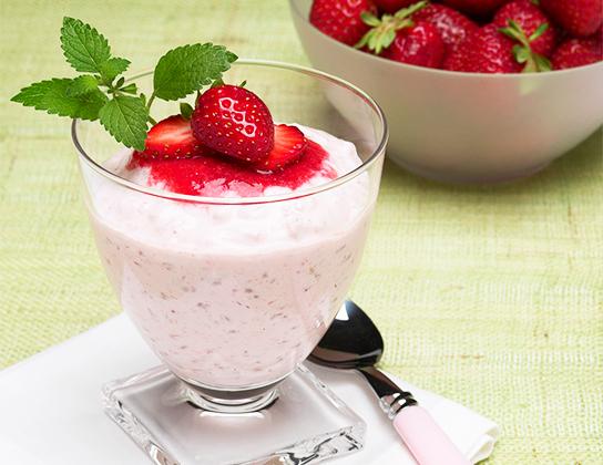 Dans un bol moyen, mélanger le yogourt égoutté, la crème sure, le sucre, la vanille et la cannelle (si on en utilise). Incorporer 1 tasse (250 mL) de la purée de fraises. Ajouter le riz et bien remuer.