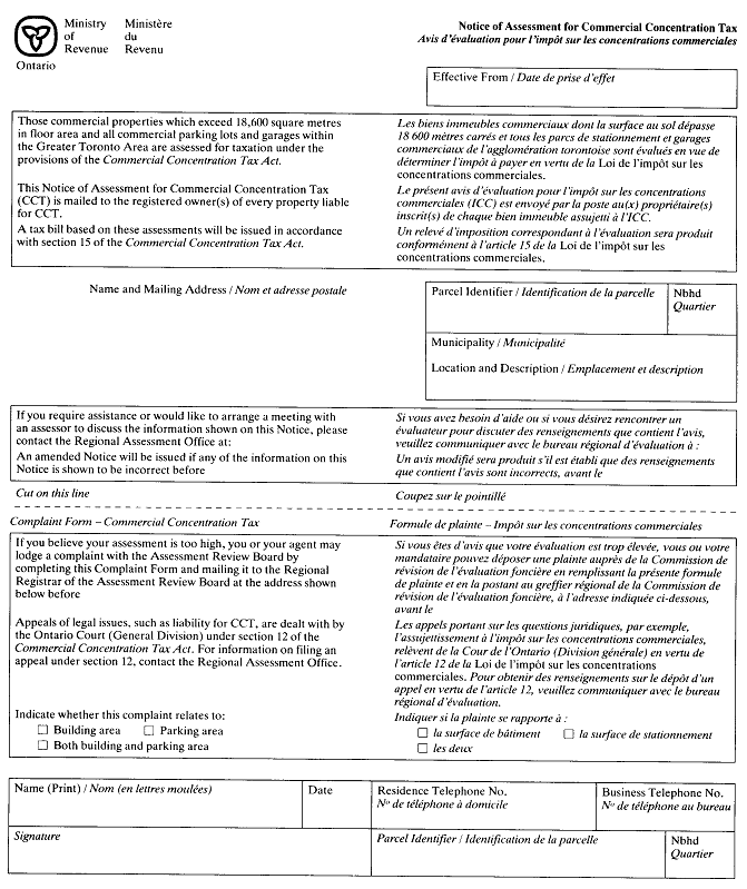 NOTICE OF ASSESSMENT FOR COMMERCIAL CONCENTRATION TAX/