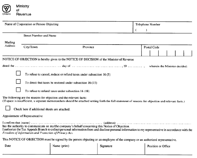 2.1 A notice of objection under subsection 16 (8) of the Act shall be in Form 3. O. Reg. 116/92, s. 1.