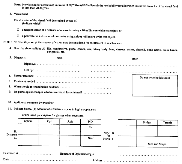 “blind person” means a person with visual acuity in both eyes that with proper refractive lenses is 20/200 (6/60) or less with Snellen chart or equivalent, or a person having the greatest diameter of the field of vision in both eyes of less than twenty degrees, where the diameter of the field of vision is determined by the use of,