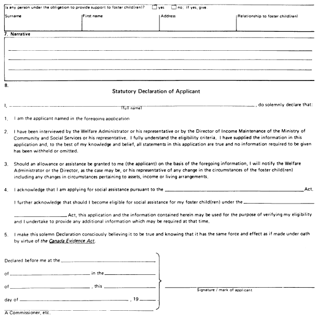Application for allowance by a foster parent |