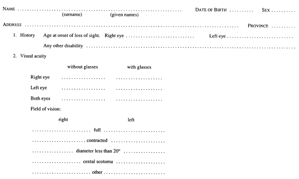 Medical report in respect of blindness |