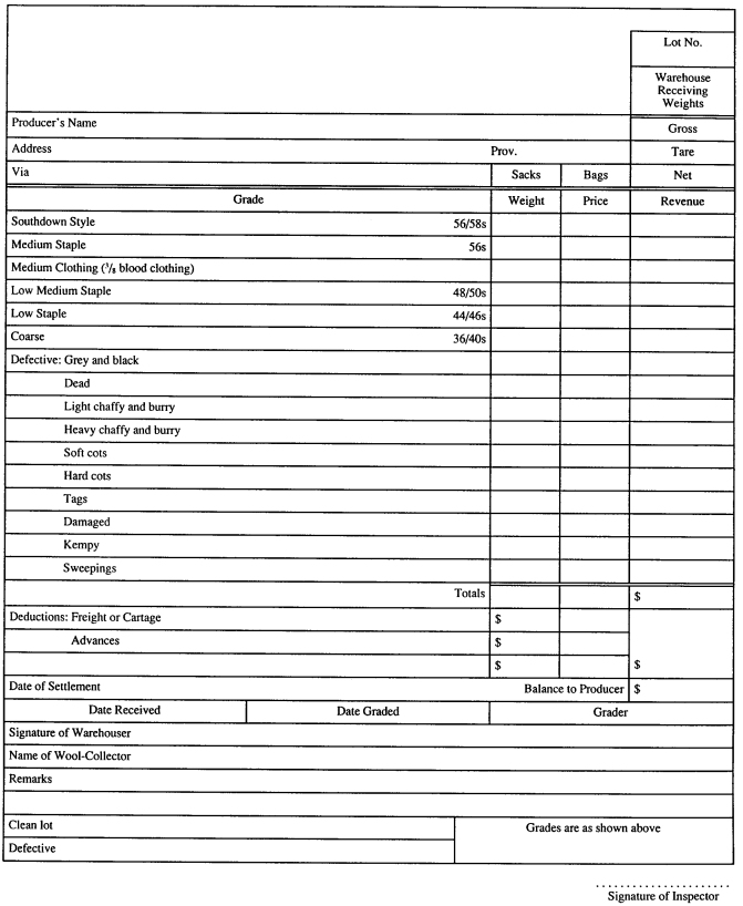 (2) After the wool has been graded, the warehouser shall complete a wool statement in Form 1 for each lot of wool received. R.R.O. 1990, Reg. 727, s. 9 (2).