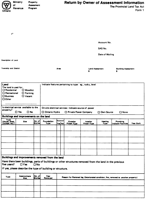 RETURN BY OWNER OF ASSESSMENT INFORMATION