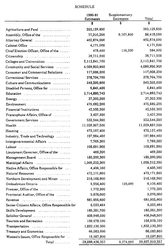 Supply Act, 1991, S.O. 1991, c. 7, Supply Act, 1991