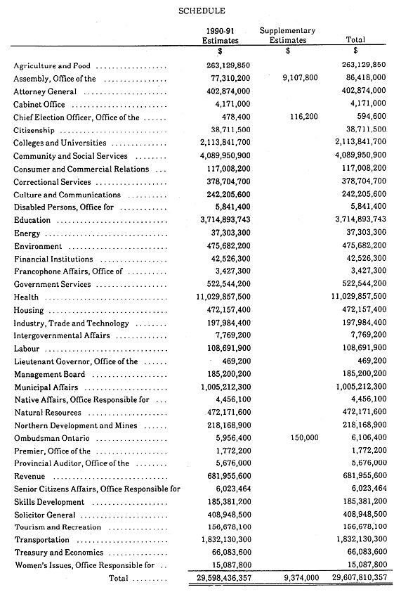 Supply Act, 1991, S.O. 1991, c. 7, Supply Act, 1991